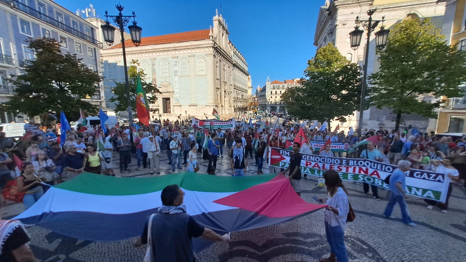 A concentração realizada, no dia 16 de setembro no Largo de Camões, contou com a solidariedade de muitas centenas de ativistas, que não quiseram deixar de estar presentes e vieram mais uma vez para a rua, com determinação, força solidariedade. É urgente não calar continuar a denunciar o crime hediondo de Israel para com este povo.